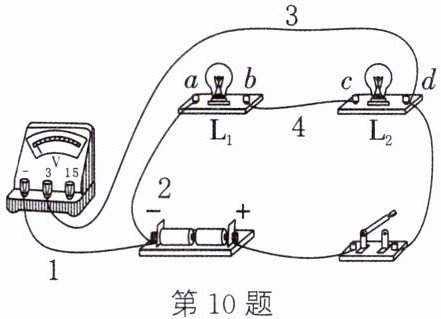 两端的电压。若要使电压表测量灯 $L_{1}$ 两端的电压,则只需要将导线3