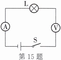 15. 如图所示的电路中,电源由两节新干电池串联组成,各个元件均能正常工作。当开关 S 闭合后,灯
