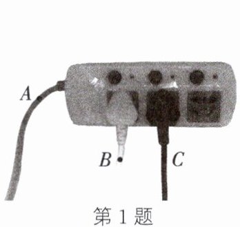 1. 如图所示为家用插线板示意图,图中A线接入家庭电路中,B线接台灯,C线接取暖器,两个用电器均正常工作时,A、B和C三处的电流分别为$I_{A}$、$I_{B}和I_{C}$,则它们的大小关系正确的是(