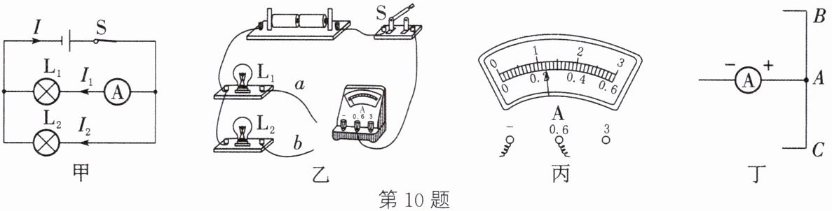 10. 为了探究并联电路的电流特点,小薇设计了如图甲所示的电路进行实验。