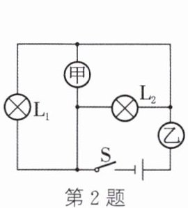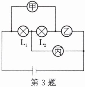 3. 如图所示,若电路中的两只小灯泡$L_{1}和L_{2}$串联,则乙是