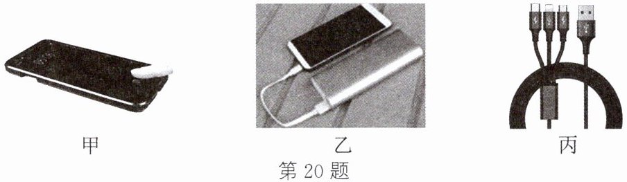 。(3)如图丙所示的手机充电线的三个插头可用于为三部不同类型的手机充电,如果三部手机同时充电,那么这三部手机的连接方式是
