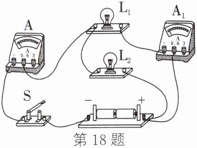 18. (2023·鄂州)如图所示的实验电路,闭合开关 S 后,电流表 A 的示数为 0.5 A,电流表 $ A_1 $ 的示数为 0.3 A,下列说法正确的是(