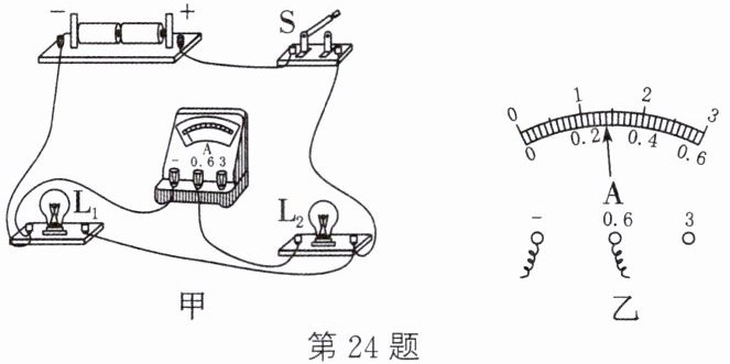 24. (2024·无锡锡山期末)如图甲所示是“探究并联电路中的电流关系”时的实验电路,应选择规格