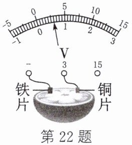 22. (2024·淮安)如图所示,取一个橙子,把铜片、铁片插入其中,制成一个水果电池。