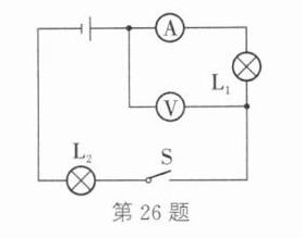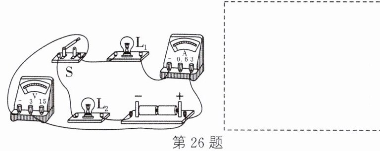 26. 根据图示的实物连接图,在虚线框中画出电路图。