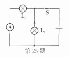 25. 在图中,根据电流方向填入电池和电流表的符号,使电路成为并联电路。