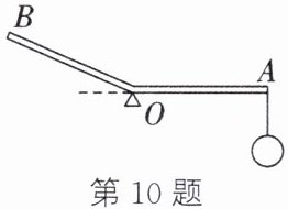 10. 如图所示,AOB为一杠杆,O为支点,杠杆自重不计,AO= OB。在杠杆右端A处用细绳悬挂重为G的物体,当AO段处于水平位置时,为保持杠杆平衡,需在B端施加最小的力$F_1;$当OB段在水平位置时,为保持杠杆平衡,这时需在B端施加最小的力$F_2,$则 (