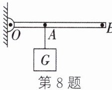 8. (2024·宿迁沭阳段考)如图所示,OAB为轻质杠杆,可绕支点O自由转动,在B端施加一个动力使杠杆在水平位置平衡,该杠杆 (
