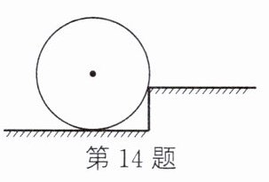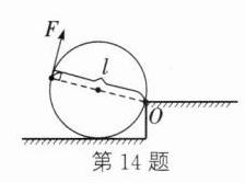 14. 如图所示,张师傅想用最省力的方法把一个油桶推上台阶。请你在图中作出杠杆的支点O、最省力的力臂l以及最小力F的方向。