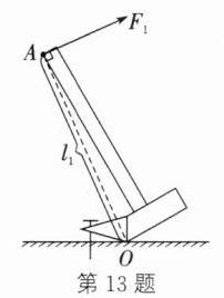13. (2024·宿迁宿豫段考)如图所示,在图中A点处画出羊角锤拔钉子的最小动力$F_1$及其力臂$l_1。$