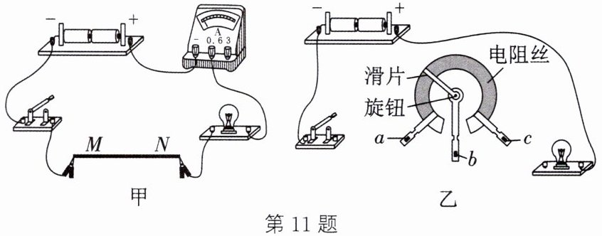 11. 小昕在台灯下看书时,感觉灯光太亮。她找来同桌小洋,想利用所学物理知识制作一盏简易调光台灯,达到调节灯光亮度的目的。