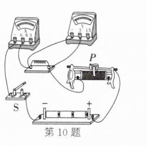 10. 在“探究电流与电阻关系”的实验中,实验器材有电源(电压恒为 4.5 V)、电流表、电压表、滑动变阻器和开关各一个,阻值为 5Ω、10Ω、15Ω、20Ω、25Ω 的定值电阻五个,导线若干。