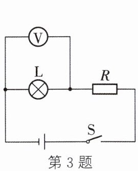 3. 如图所示,电源电压$U = 12V$,定值电阻$R = 10Ω$,闭合开关S,电压表的示数是4V,通过小灯泡的电流是(