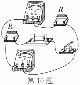 10. 如图所示电路的电源电压为1.5V,电阻$R_{1}$的阻值为2Ω,闭合开关后,电流表的示数为0.3A,则(