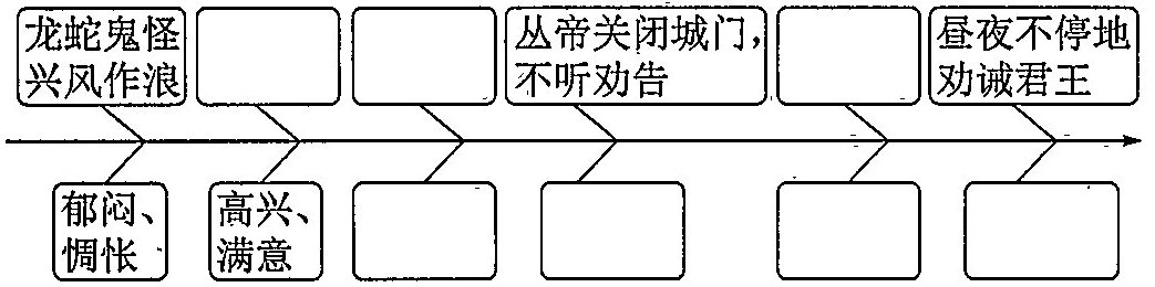 龙蛇鬼怪兴风作浪 □ □ 丛帝关闭城门,不听劝告 □ 昼夜不停地劝诫君王
