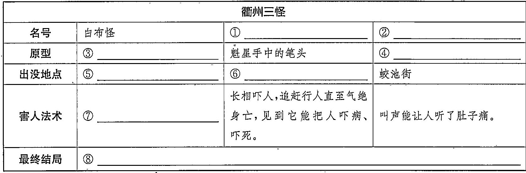 4.“衢州三怪”是具有衢州地方特色的民间传说故事。请你根据以上材料,提取关键信息完成对“衢州三怪”的信息梳理。(4分)