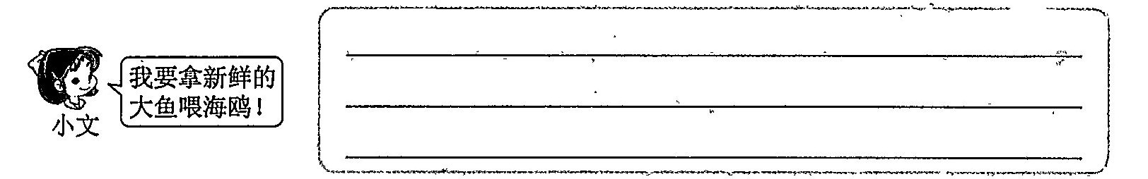 (3)× 2.示例:我有着洁白的头颈和石板灰色的背、肩,腰部和尾巴上的羽毛则是纯白色的,看起来非常优雅。我的嘴巴长长的,有35一51mm呢,比麻雀的嘴巴长多了,这样我就能更好地捕食小鱼和昆虫了。我的骨架只占体重的5%,所以我能轻松地在空中飞翔。小朋友们,你们喜欢我吗?如果你们来海边,一定会看到我和其他海鸥朋友们在海面上翩翩起舞,那是一幅多么美丽的画面啊! 3.材料二主要介绍了青岛因市民“挽留海鸥”行动,来青岛越冬海鸥数量大增,成为城市名片,还介绍了海鸥的食物、投喂注意事项等。 4.示例:我不赞同小文的想法。虽然新鲜的大鱼可能是海鸥喜欢的食物之一,但根据材料中提到的建议,喂食海鸥应该避免使用大块食物或过量喂食,因为这可能导致海鸥消化紊乱,并且过多的饲料掉入水中会对水质造成污染。因此,即使是新鲜的食物也应当适量并且以适当的方式投喂。 5.示例:③ 这个图案生动地展现了海鸥在海边与人类欢快相处的场景,能让人直观感受到海鸥的活力与美丽,激发人们对海鸥的喜爱之情。 宣传语:与海鸥共舞,享海滨风情。