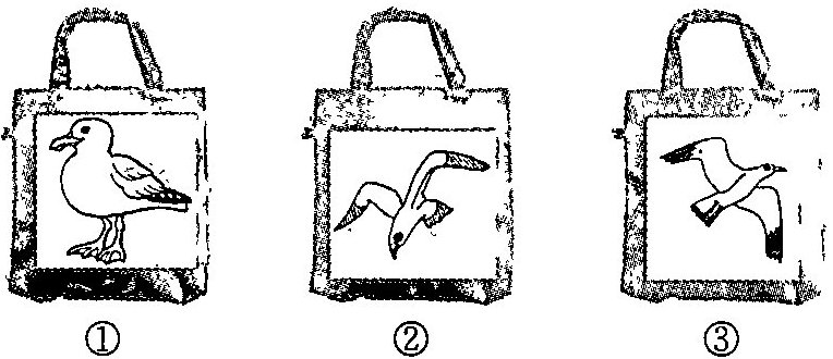 5. 为了吸引更多的游客参与喂鸥活动。作为纪念,文旅部门打算印制一批帆布袋,特开展图案设计票选活动,请你参与投票,说明原因并根据所选图片设计一句宣传标语。(5分)