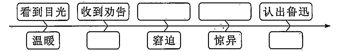 1.看到定价 听到提议 疑惑 激动 2.运用外貌描写的方法,将鲁迅先生的精气神细致地刻画出来,塑造了一个精神抖擞的文人形象。 3.突出鲁迅先生把一生的时光都交给了革命事业,没有休息,艰苦工作,展现了他为了人民无私奉献的精神,也表达了作者对鲁迅先生的心疼和崇敬 4.面对黑暗的社会,鲁迅是刚正不阿、毫无畏惧、勇往直前的战士;日常生活中,鲁迅给予青年人真挚关心,是一位慈爱的长辈。 5.C 6.示例:鲁迅先生,您是黑暗中的明灯,用您的笔杆做武器,与黑暗势力不懈斗争;您是民族的脊梁,以顽强的意志为民族独立、人民幸福耗尽心血。您对一个普通工人的诚恳劝告,对民众的关爱,让我们感受到您的亲切与温暖。您不顾自己的健康,全身心投入革命事业,您的精神永远激励着我们前行!