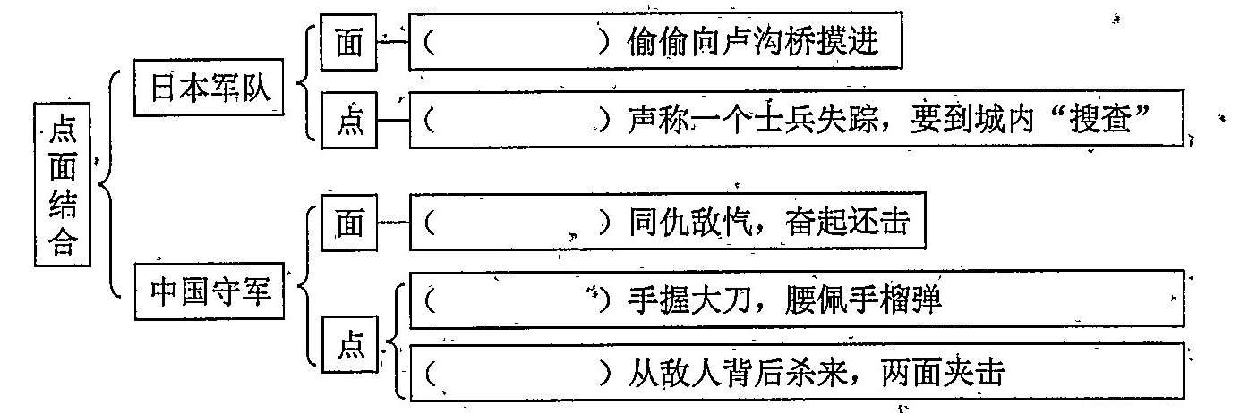 向卢沟桥进发。4. 作者是如何运用点面结合描写战争场面的? 请你根据短文内容填一填。(5分)