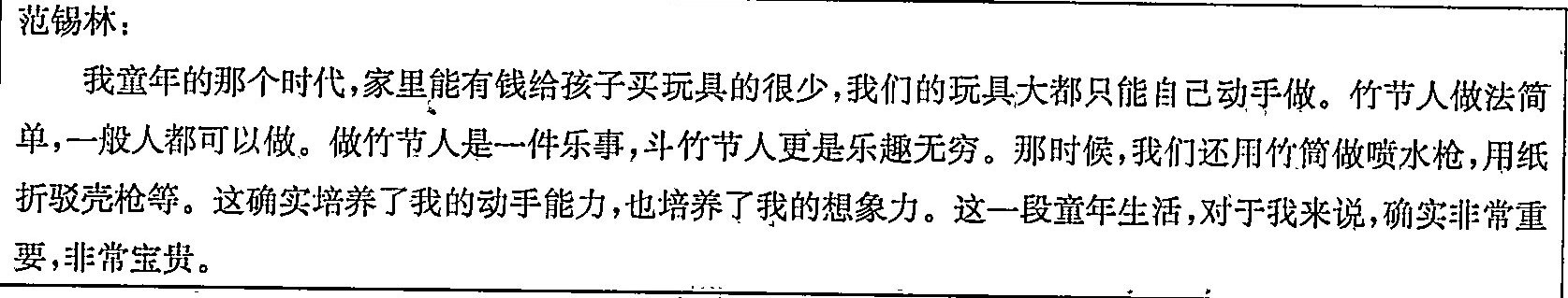 D. 竹节人是范锡林先生玩过的玩具之一,给他的童年生活带来了很多的快乐,是他儿时的美好记忆。
