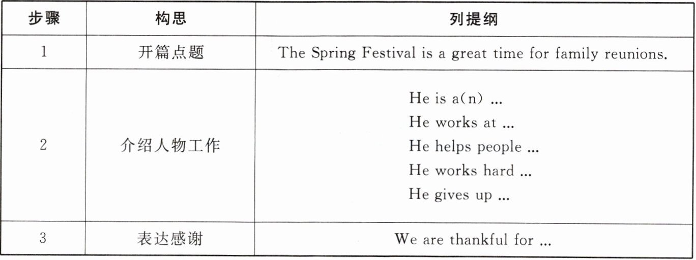 | 1 | 开篇点题 | The Spring Festival is a great time for family reunions. |