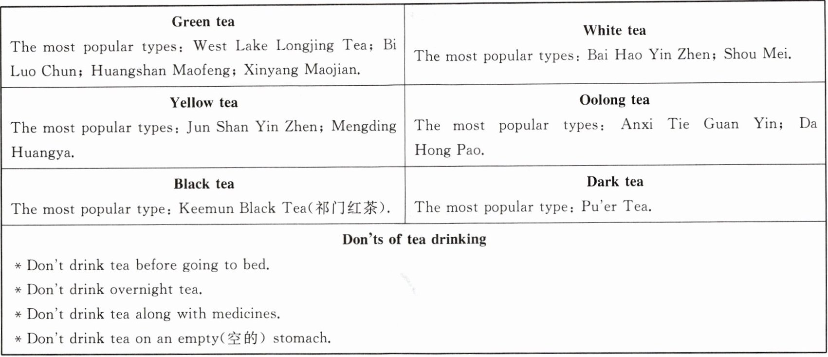 ( )1. How many kinds of the most famous Chinese tea can we find in the passage?