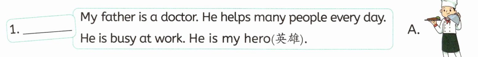 任务一:根据短文内容,为每位家人选择相应的“形象照”,将序号填入上面的方框内。