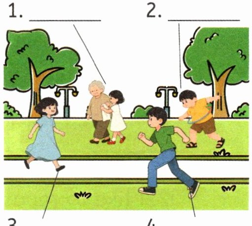 苏珊(Susan)和她的好朋友们都在做自己喜欢的事。为图中人物选择相符的句子描述,将序号写在相应的横线上。