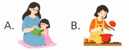 ( )3. A. She is cleaning. B. She is a cleaner. C. She helps us.