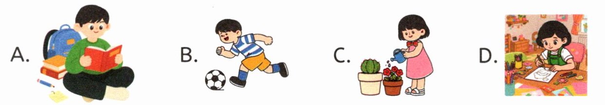 遇到不同的天气时,我们如何调整计划呢? 根据天气情况,给句子匹配正确的活动图。