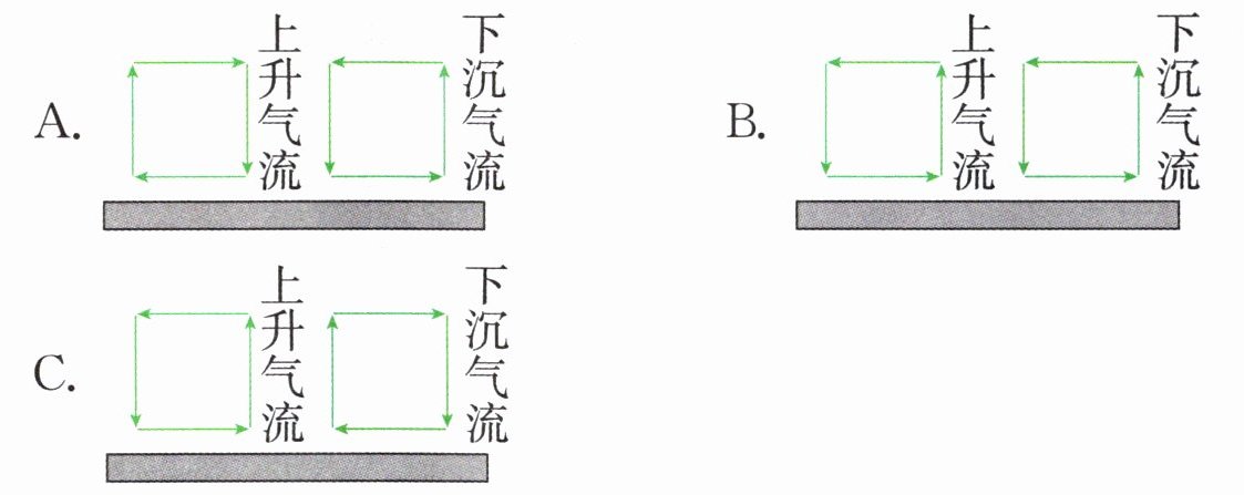 ④靠近地面的大气经常发生水平运动和垂直运动,下列图中,上升气流和下沉气流表示正确的是( )。