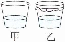 C. 乙杯塑料薄膜内侧有小水珠出现