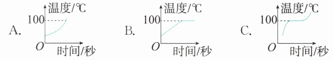 易错:一般情况下,水的温度达到$100^{\circ}C$时继续加热会沸腾,且温度保持不变。