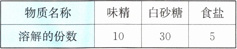 (3)小金用相同量的水比较味精、白砂糖、食盐在清水里的溶解能力。他的实验记录如表所示: