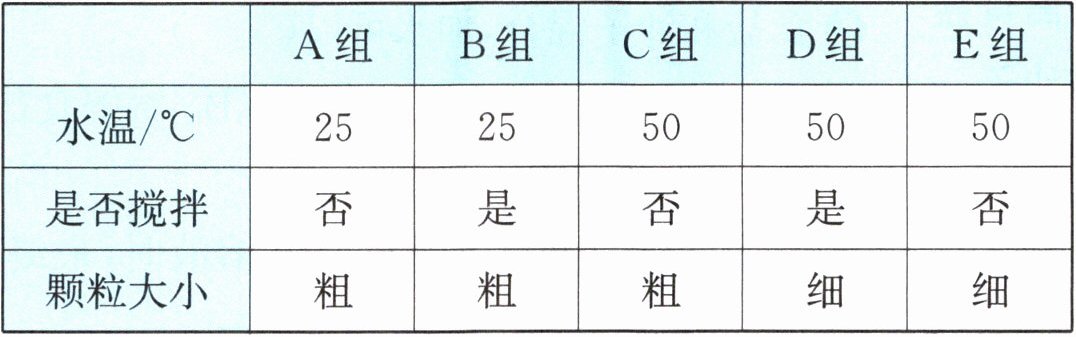(2)小柯还想探究颗粒大小对溶解快慢的影响,他应该选择______组和______组进行研究。
