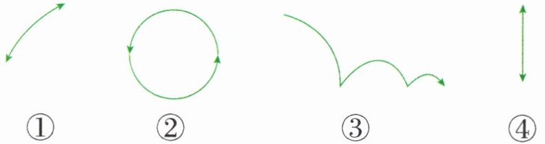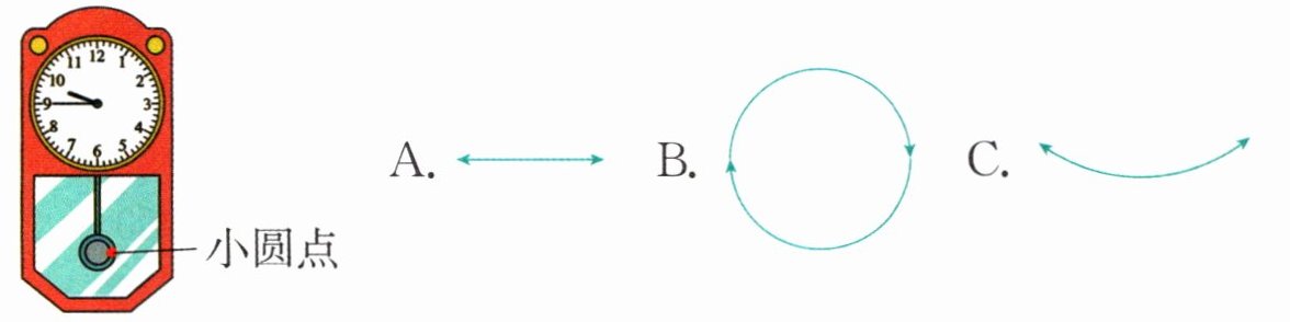 ② 观察如图所示的钟摆上的小圆点,它的运动路线是( )。