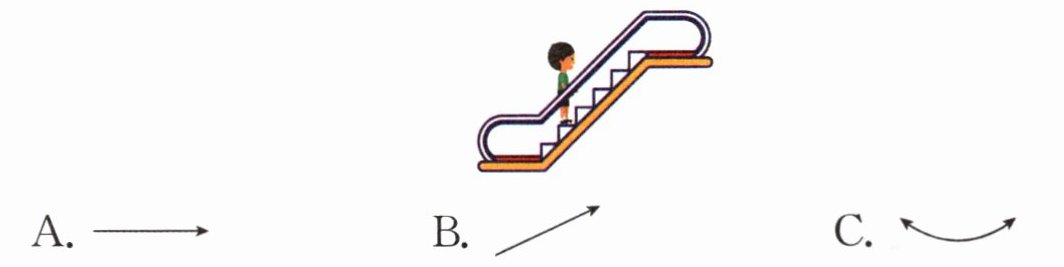 1 图中人物站在自动扶梯上,他的运动路线是( )。