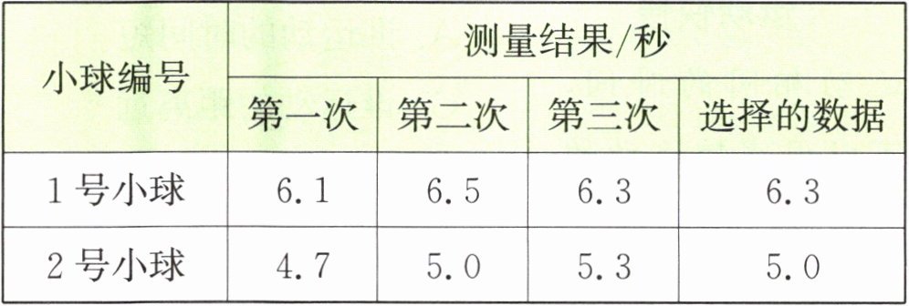 (3)2 号 运动相同的距离,2 号小球所用的时间最短