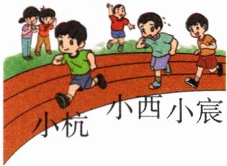 2 图中三人同时从同一起点出发,( )跑得最快。