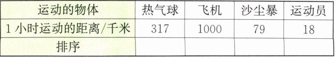 | 运动的物体 | 1小时运动的距离/千米 | 排序 |