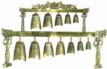 9 〔趣味应用〕中国是最早制造和使用编钟的国家。编钟由不同的扁圆钟按顺序排列起来,悬挂在一个巨大的钟架上,用丁字形的木槌有规律地敲打各个钟体,可以演奏出美妙的乐曲。