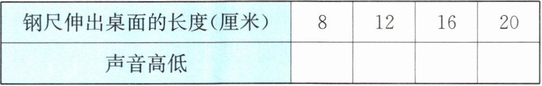 |钢尺伸出桌面的长度(厘米)|8|12|16|20|