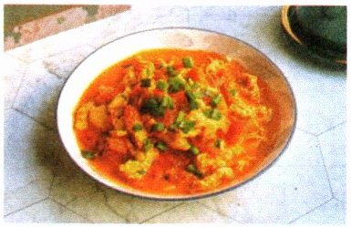 如图所示为撒有葱的西红柿炒蛋,统计食物时,应将其记为______种食物。