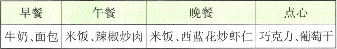 ③如表所示为小西一天的食物记录,这一天中,小西一共吃了______种食物。