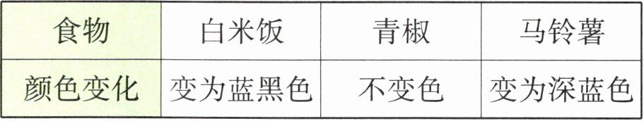 1. 在食物上滴一滴碘酒,若变为蓝色,则说明该食物中含有______。