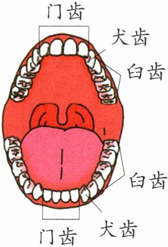 1.门齿 臼齿 犬齿 2.门齿 犬齿 臼齿
