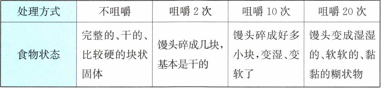 (2)咀嚼后的馒头和咀嚼前相比,发生的变化是( )。