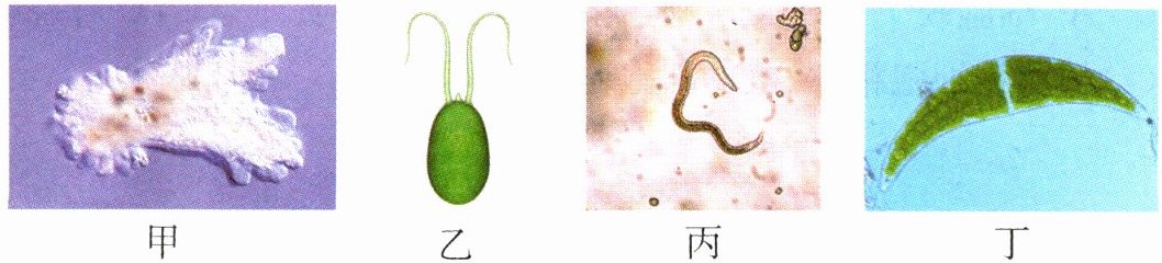 池塘水 控制这些生物的运动速度 丙、甲、丁、乙